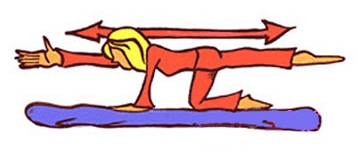 STEP 3-2、然后右臂向前平举的同时,左腿向后伸直抬起,使得上下身前后拉直。保持10秒后放下恢复之前的姿势,然后换成左臂右腿前后抬起。