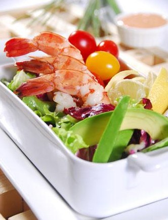 材料:3杯切块的长页莴笋、5个大冻虾、梨、1/3杯冻玉米粒、一杯小西红柿、一茶匙调料。