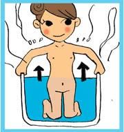 左:双手扶浴缸两侧,绷直大腿,上下抬动,使腿部脂肪充分消耗。
